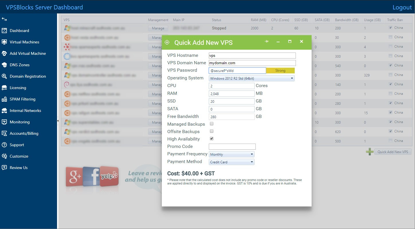 You can directly manage the hardware firewall for your VPS from our control panel, ensuring the maximum security for your VPS.