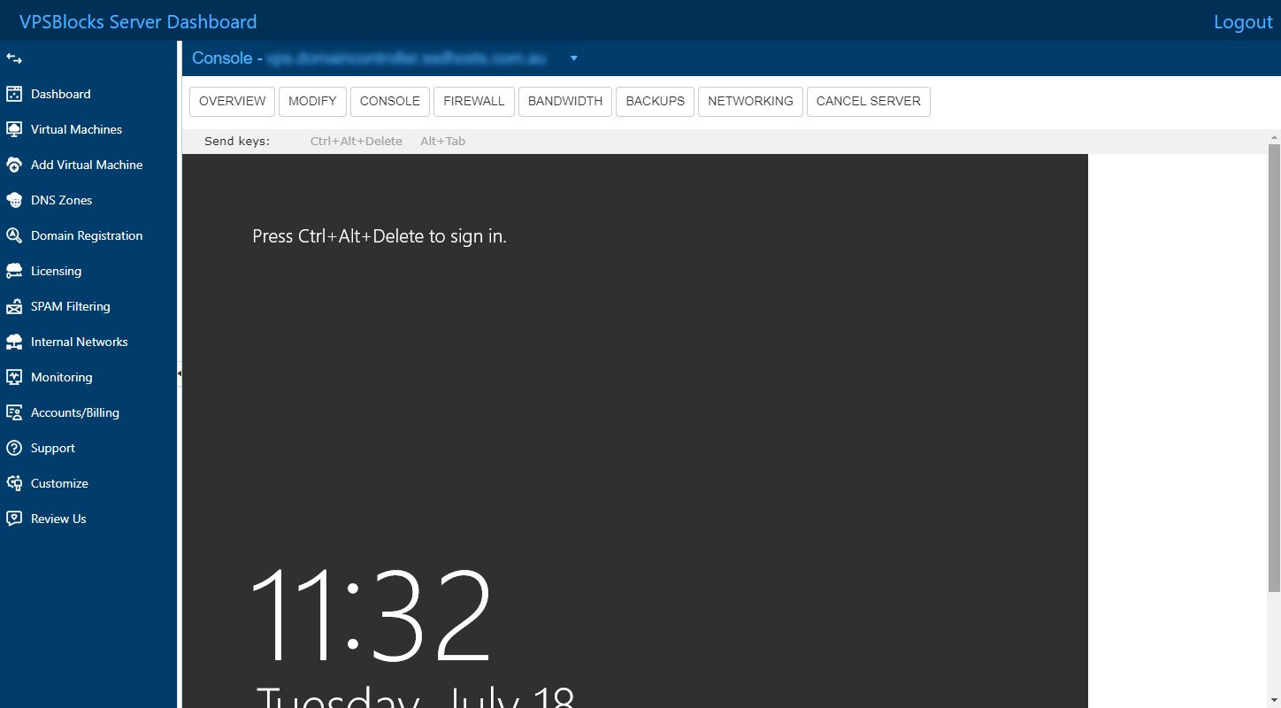 Access your VPS via the console, useful if you have locked yourself out of SSH or RDP.